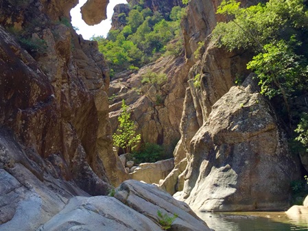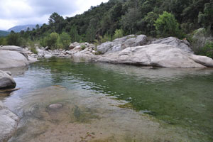 Wer im Hochsommer einmal genug von den vollen Becken hat und einmal im Bavella-Gebiet eine einsame Flusswanderung unternehmen möchte, macht eine Flusswanderung dem Unterlauf des Vacca entlang und gelangt so zu einsamen Becken.
