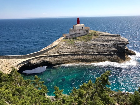 Der alte Leuchtturm Phare de la Pertusato schickt seit 1838 Nacht für Nacht sein Licht über die Straße von Bonifacio - seit 1985 vollautomatisch.