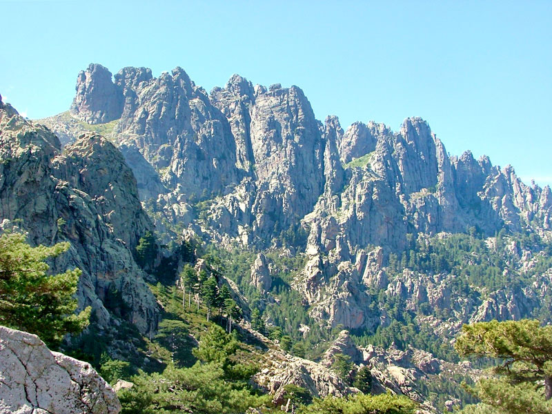 Alte Olivenbäume, vom Wind zerzauste Kiefern, Felsnadeln und Steinblöcke in den skurilsten Formen: Schon die Fahrt zum Bavella-Pass ist ein Genuß.