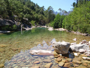 Wer im Hochsommer einmal genug von den vollen Becken hat und einmal im Bavella-Gebiet eine einsame Flusswanderung unternehmen möchte, macht eine Flusswanderung dem Unterlauf des Vacca entlang und gelangt so zu einsamen Becken.